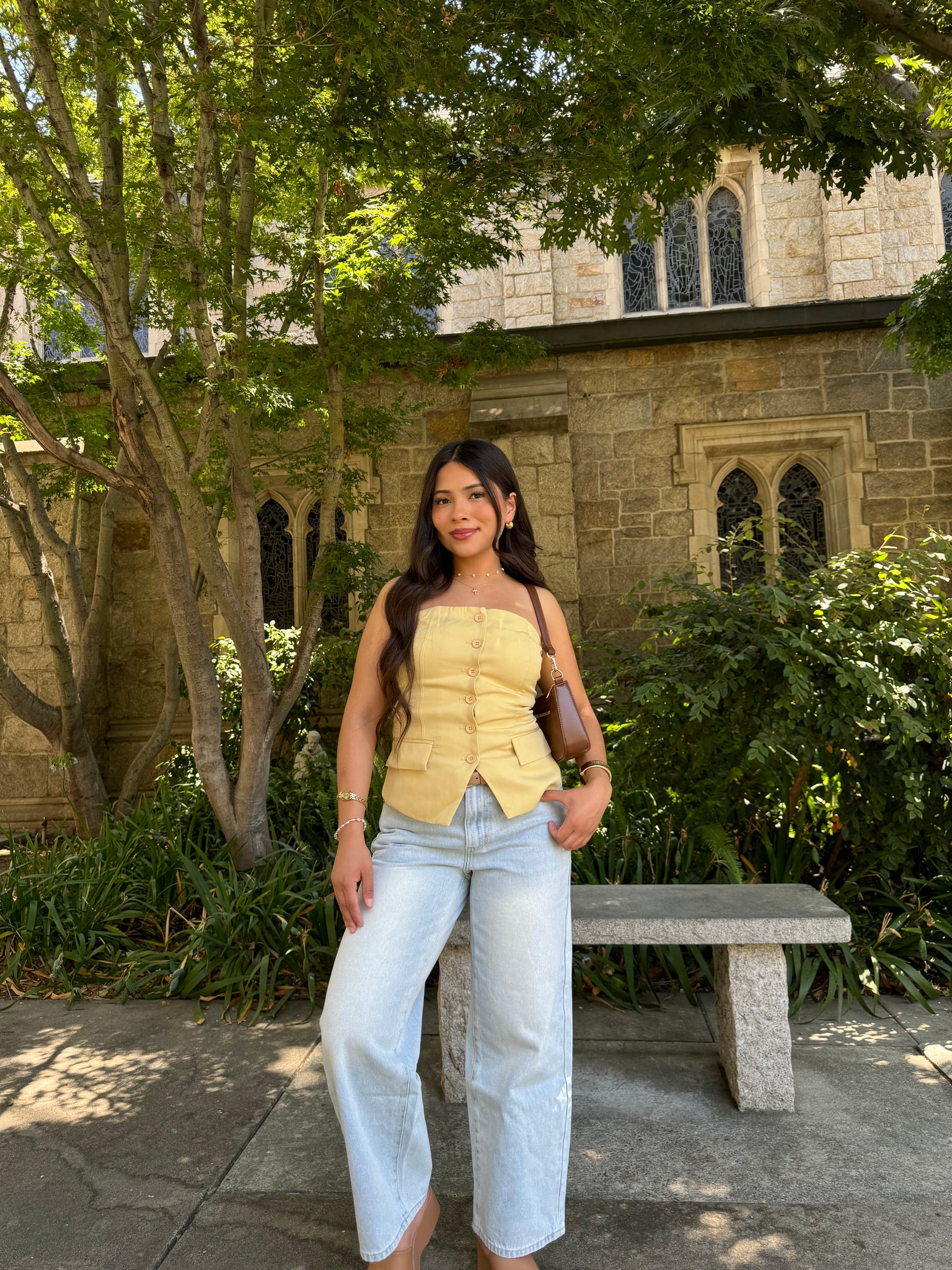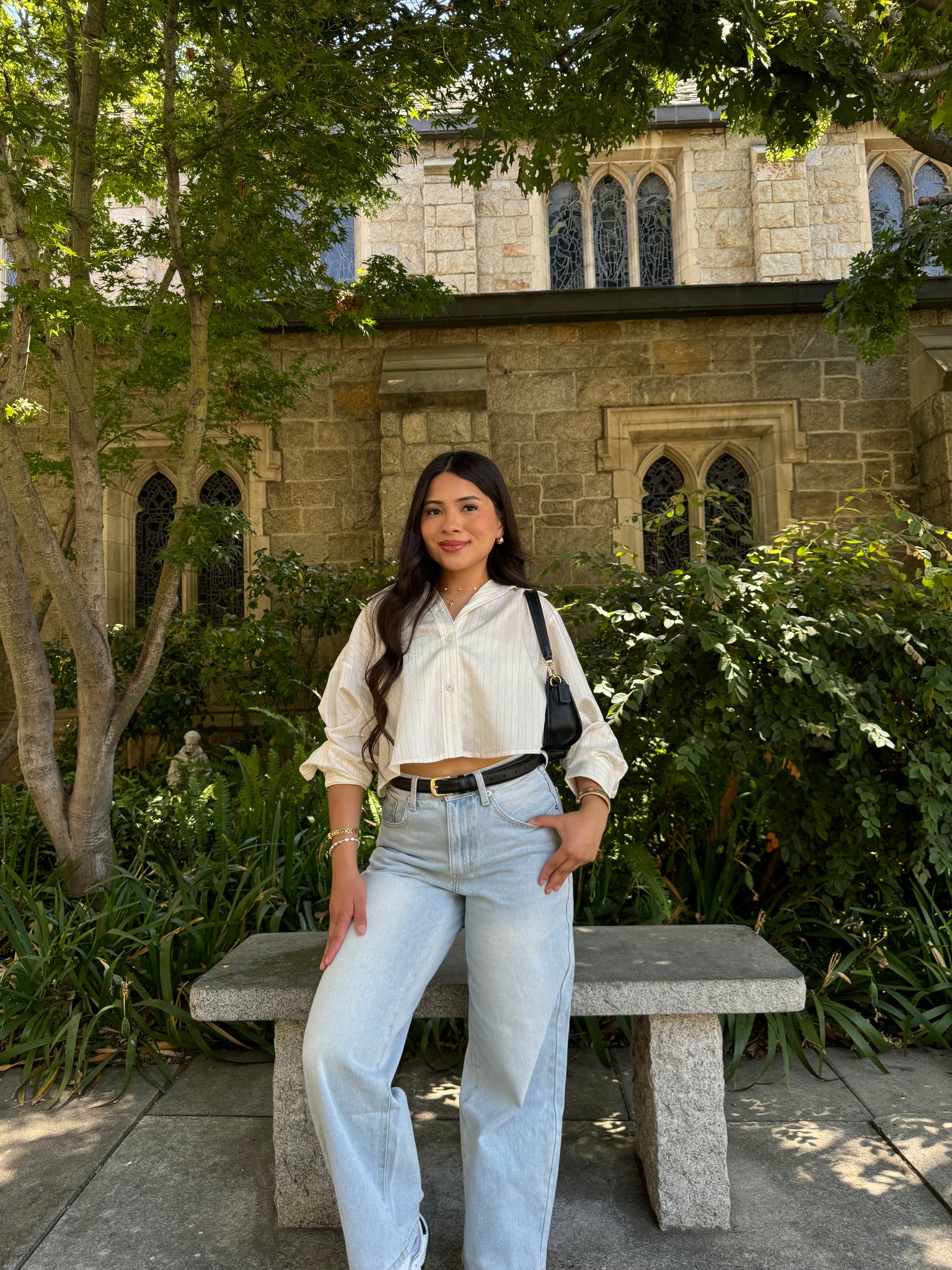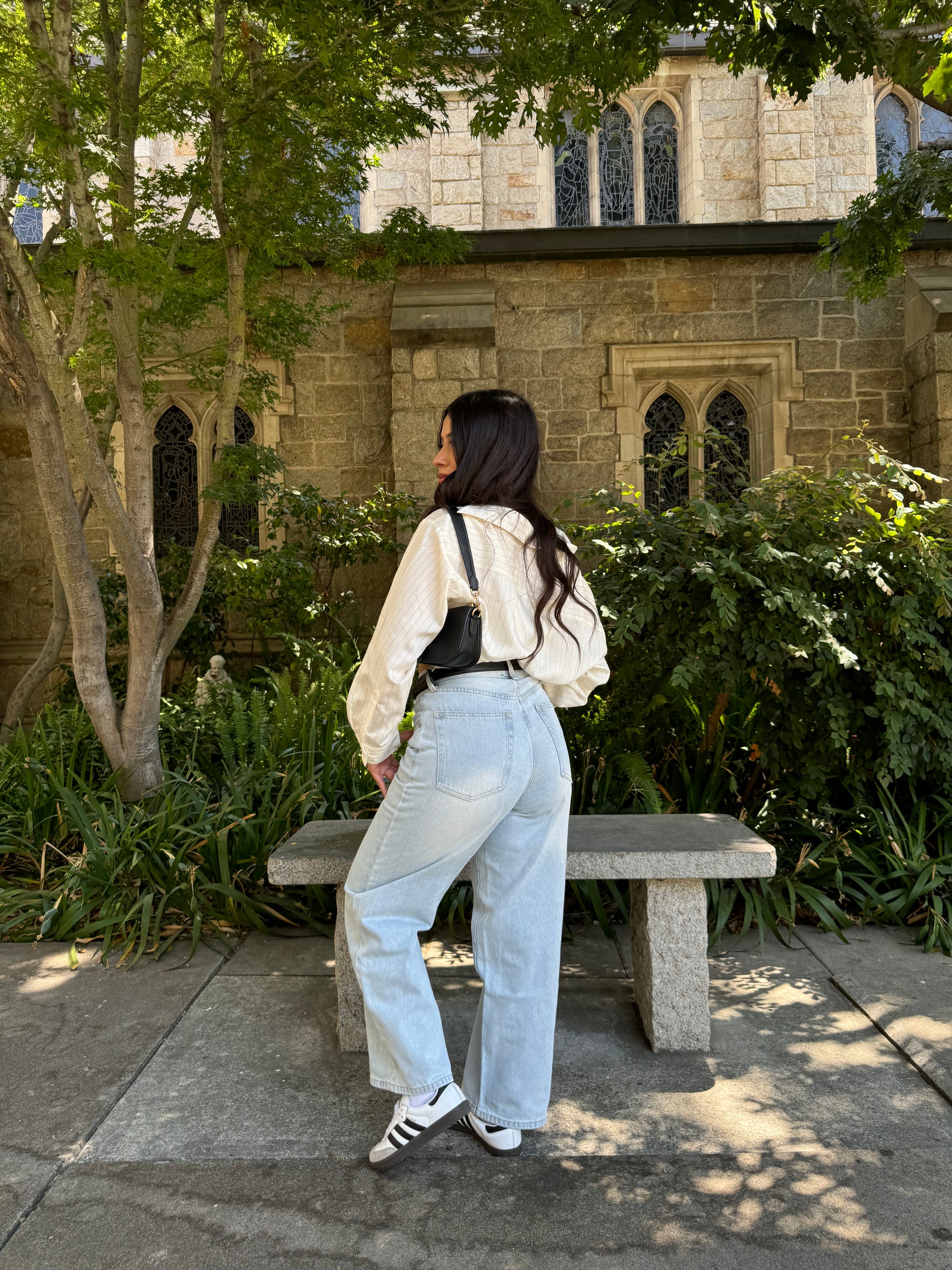 The Fall For Me Waisted Mom Jeans offer a flattering fit that hugs your thighs and creates a straight-leg effect. They are true to size, and the waistband does not stretch, so we recommend staying true to size or sizing up if you are in between sizes for the best fit.
